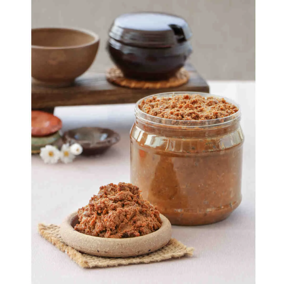 Doenjang is fermented soybean paste: a deep, savoury flavour that accentuates its umami from fermentation. Traditional Gochujang also goes through 2-3 months of fermentation with Meju (fermented soybean in powdered form) and Gochugaru (dried Korean chili pepper powder) but is all about a savoury-sweet heat that excites the palate.
